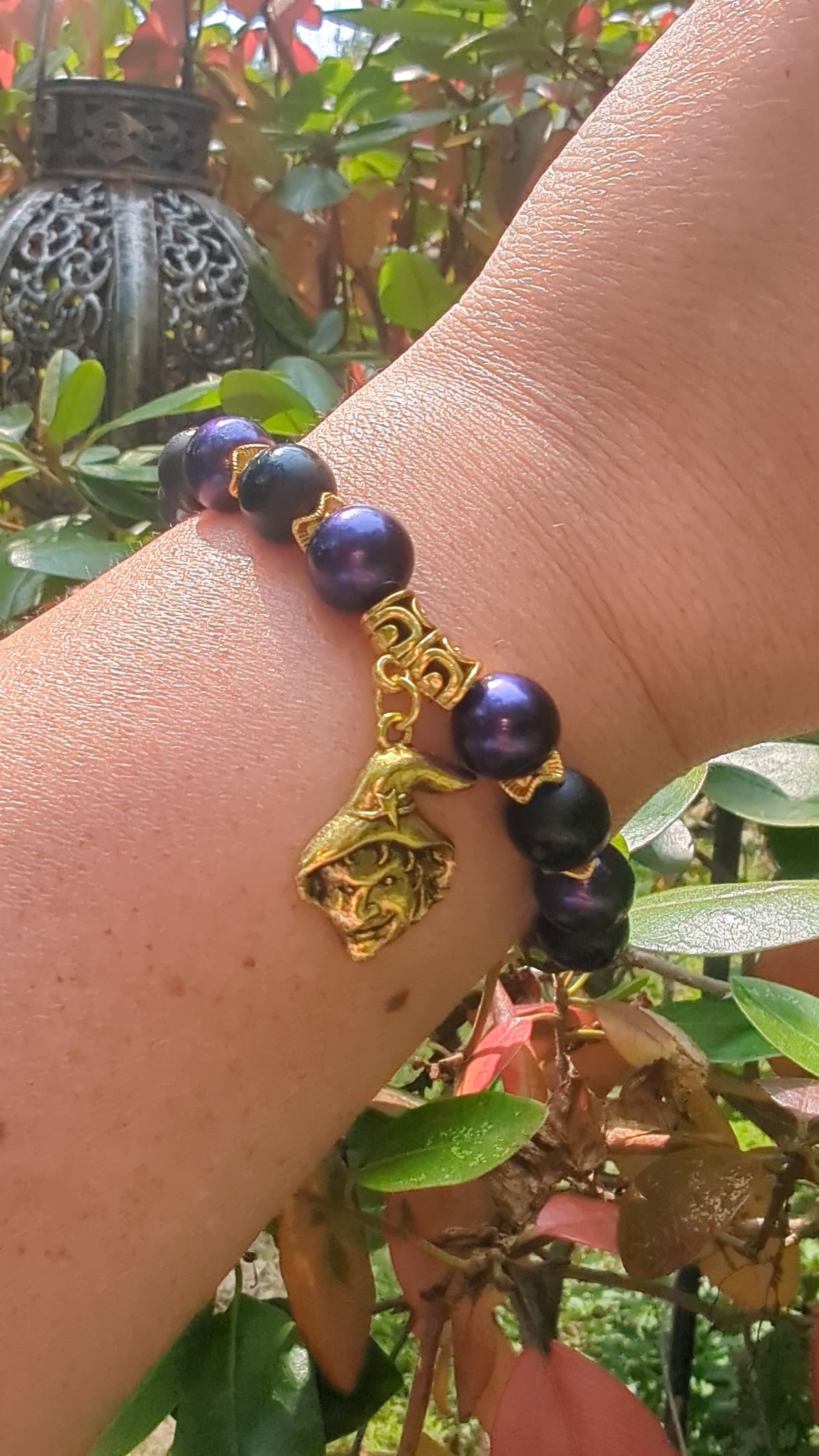 Mysterious and enchanting, Witch’s Whisper is a bracelet that channels the power and allure of Halloween magic. Matte black and shimmering purple beads set the stage for golden accents that glow like candlelight in the dark. At the center, a golden witch charm adds a touch of spellbinding charm, perfect for those who love the mystical side of the season.